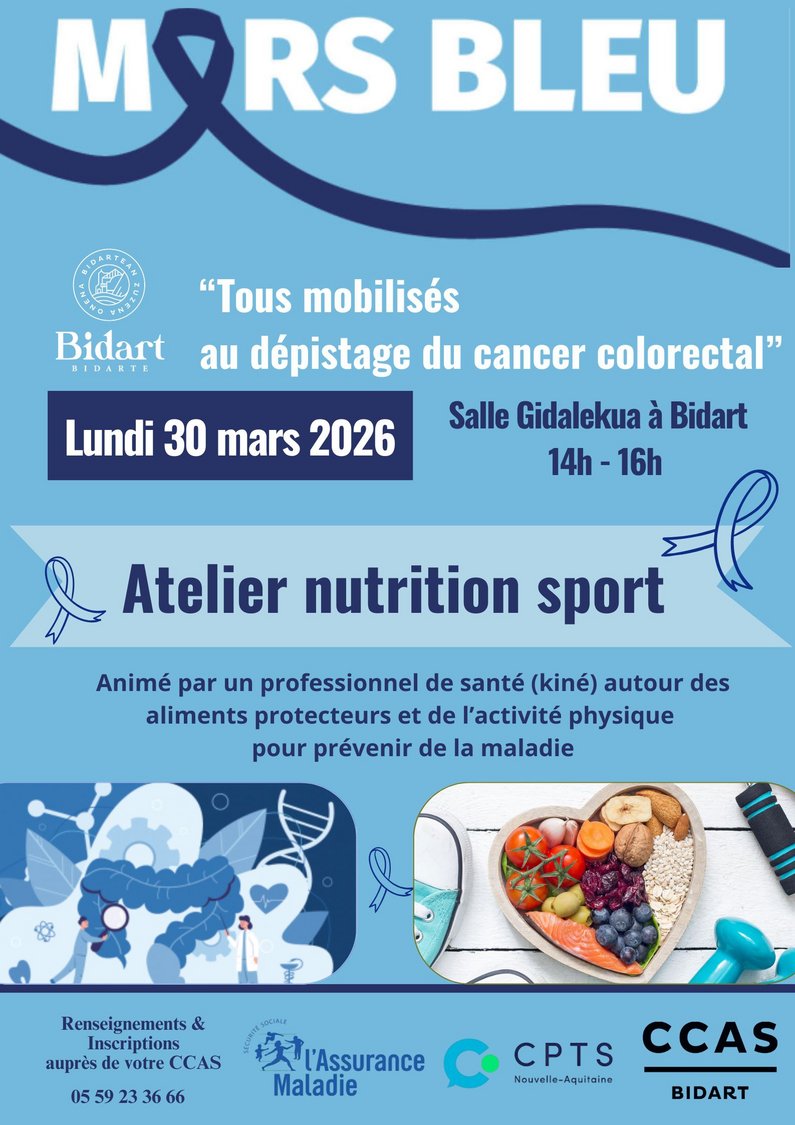 Le CCAS de Bidart, en partenariat avec l'Assurance Maladie et le CPTS Nouvelle-Aquitaine organise cet atelier animé par un professionnel de santé (kiné) autour des aliments protecteurs et de l’activité physique pour prévenir de la maladie.